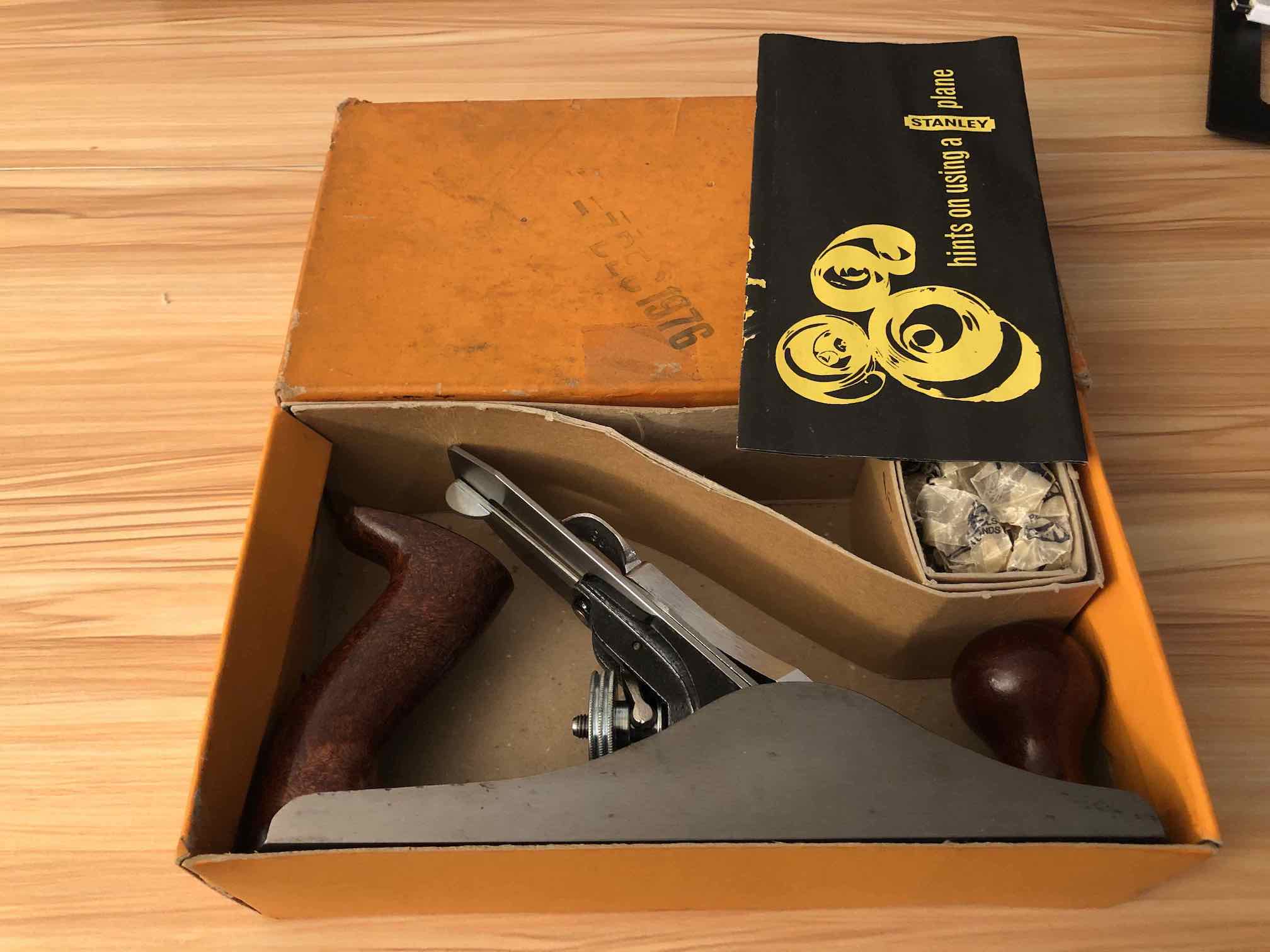 I bought this 1976 made in England Stanley No. 4 hand plane to convert it to a scrub plane. However, with original box, original quick start manual, and gorgeous knob and handle, I was hesitate to make the conversion. Could this good looking plane be tuned to work as a fine smoothing plane? When I start to take it apart and look at the inside, the answer is a maybe.